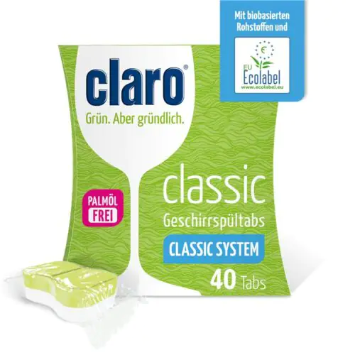 claro ist der Hersteller von Geschirrspültabs und Waschmittel mit höchster Reinigungsperformance, die strahlend sauber reinigen und gleichzeitig die Umwelt schonen.