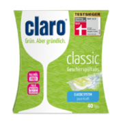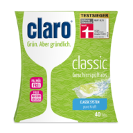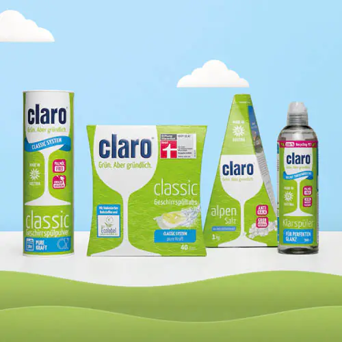 claro ist der Hersteller von Geschirrspültabs und Waschmittel mit höchster Reinigungsperformance, die strahlend sauber reinigen und gleichzeitig die Umwelt schonen.