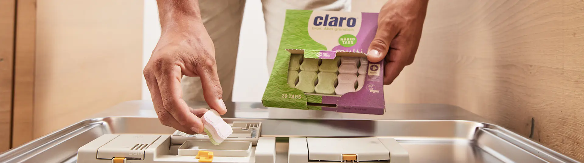 Die Classic Tabs entfalten ihre ganze Kraft in Kombination mit dem claro Salz und claro Klarspüler.