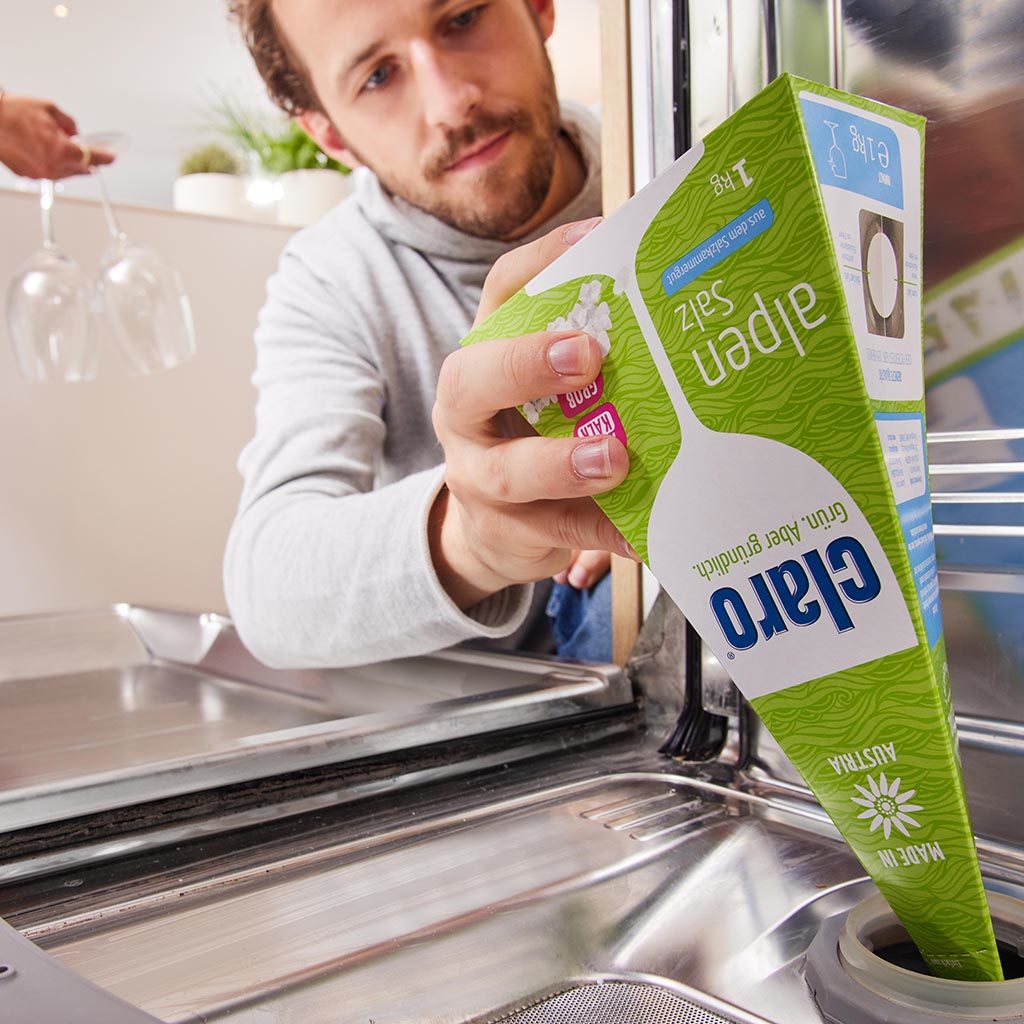 Unsere Classic Geschirrspültabs spülen rückstandslos und sind somit unbedenklich für Mensch und Natur. Die patentierte wasserlösliche Folie ermöglichst einfaches Dosieren und vermeidet Plastikmüll. Das Alpensalz macht das Wasser weich und verhindert so Kalkablagerungen in der Maschine. Für einen glanzvollen Auftritt sorgt unser claro Klarspüler.