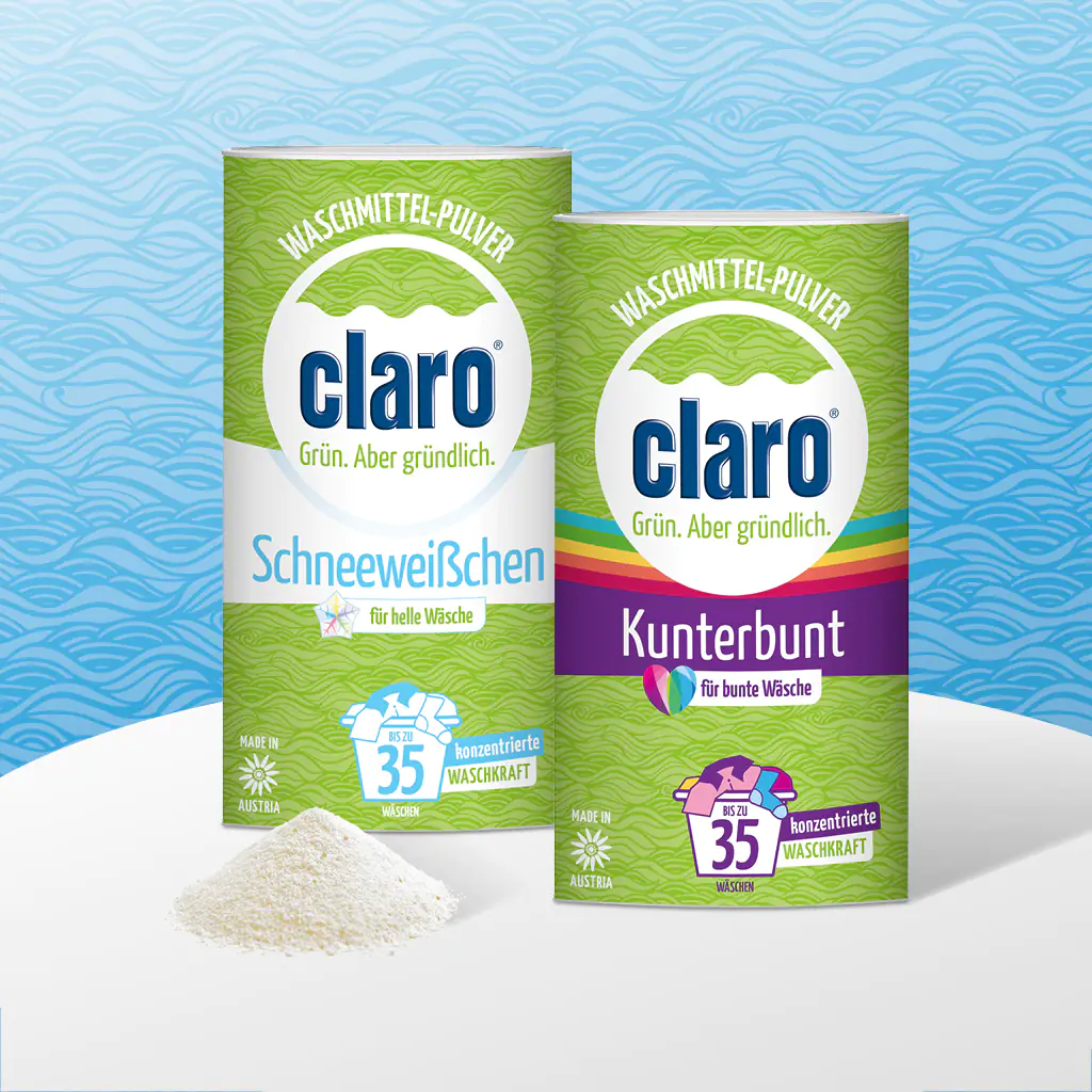 Development of the claro detergent powder Kunterbunt and Schneeweißchen.