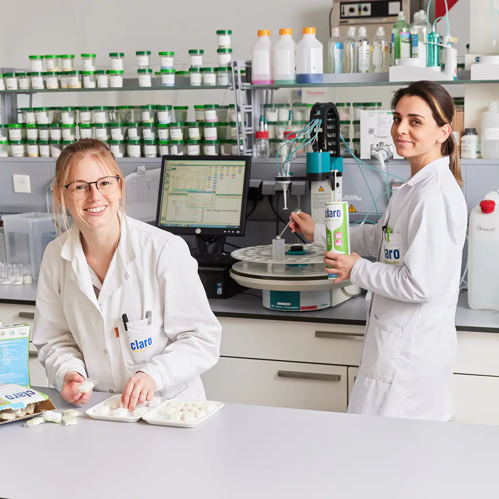 What we have: Creators, nimble and hard-working hands, people who keep track of many processes and always know where things are going. Add to that lots of machines like tabs presses and assembly lines. And there you are in the middle of claro’s modern production department.