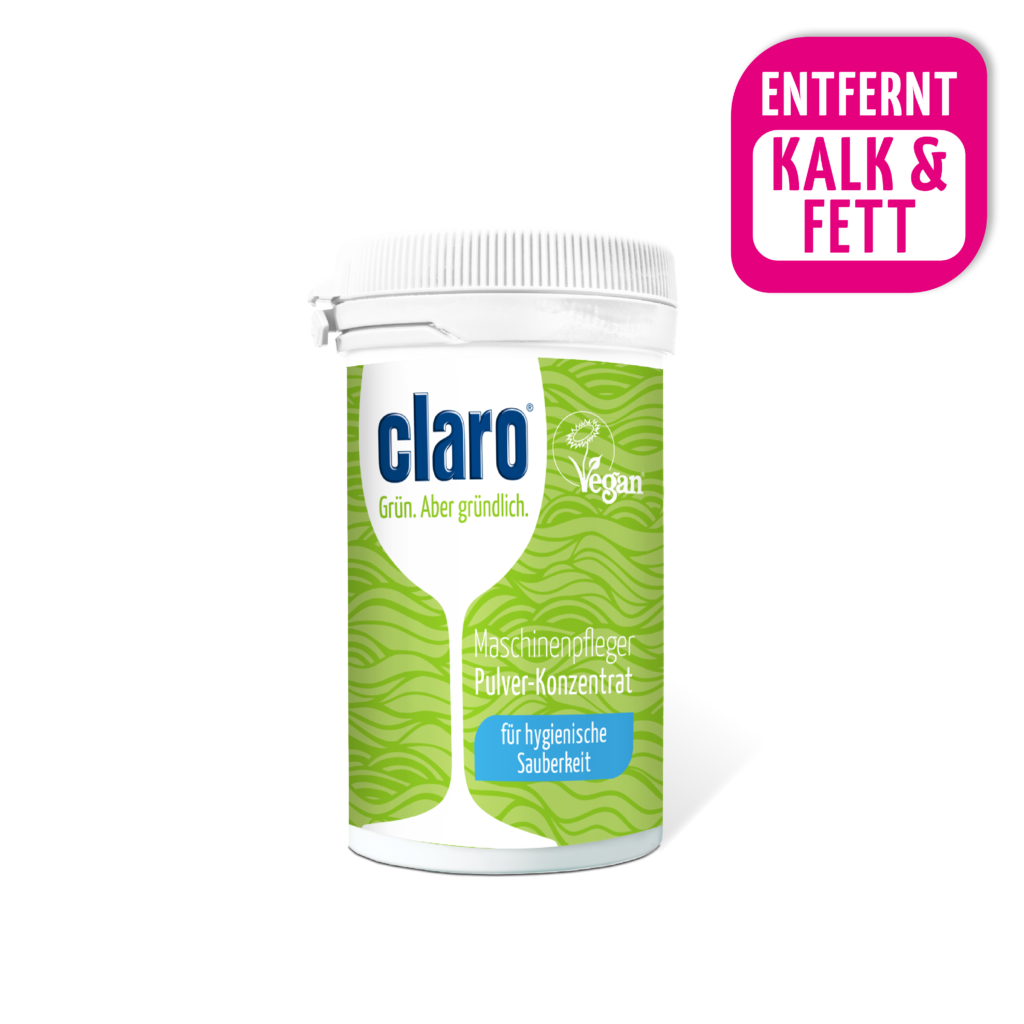 Because our dishwasher has to be serviced at regular intervals, our developers have come up with something very special: The patented claro dishwasher care in powder form frees the dishwasher of grease and limescale deposits and thus ensures a hygienic climate in the dishwasher.