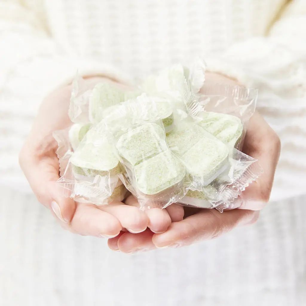 The boxes for our Tabs and our Alpine Salt are made of recycled paper and of course are plastic-free, so they can be easily put in the paper waste for recycling.