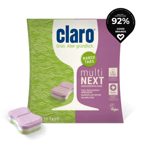 Aus natürlichen Inhaltsstoffen, vollkommen biologisch abbaubar und frei von Farb- und Duftstoffen. Verpackt im kompostierbaren Graskarton.